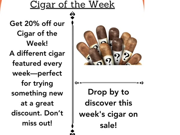 Get 20% off our Cigar of the Week- perfect for trying something new at a great discount. Stop in today to try our cigar of the week!